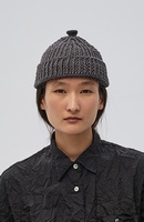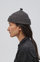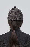 — Короткая шапка-бини с отворотом и вывязанной деталью на макушке