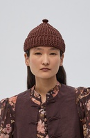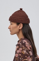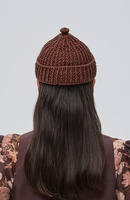 — Короткая шапка-бини с отворотом и вывязанной деталью на макушке