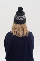 ⁃ Medium-sized hat with a lapel and a jacquard pattern